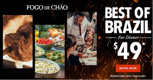 Fogo, Weekday Lunch, Dinner, and Weekend Brazilian Brunch. Guests can enhance their experience with offerings ranging from a shareable Wagyu New York Strip, South American wines, and more. For locations and to book a reservation to experience the fire of