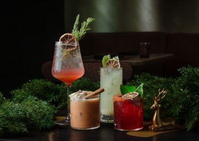 Red + Gold Party – Enter a festive celebration adorned with twinkling lights, holiday décor and photo-worthy backdrops to capture the holiday cheer.